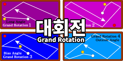 대회전은 일반적인 3쿠션 해법보다 2쿠션 정도 더 형성한 후에 득점하는 방법이므로 큐볼이 출발하는 속도가 빠르기 때문에 이로 인해 발생하는 큐볼 궤적의 차이를 먼저 이해하는 것이 좋습니다.